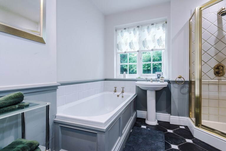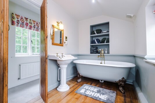 The house features two spacious bathrooms, each equipped with both a bath and a shower — ideal for soaking after a long day exploring the stunning Cheshire countryside or freshening up before a night out in nearby Alderley Edge or Wilmslow.