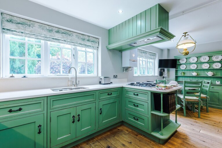 The traditional kitchen is the heart of the home, fully equipped with everything you need to prepare anything from a hearty breakfast to a gourmet dinner. With charming design details, quality appliances, and ample space, it’s a joy to cook and dine in.