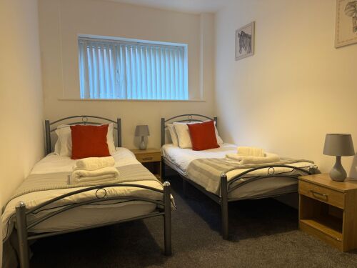 Each 1-bedroom apartment features a comfortable double bed, a bright living space, a fully equipped kitchen and a contemporary bathroom – perfect for short breaks or extended visits. The 2-bedroom apartment is ideal for families or colleagues, offering one double bedroom and a twin room with two single beds, along with generous living and dining areas.