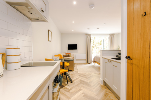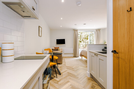 Welcome to our charming studio apartments, nestled in a serene apart-hotel in the heart of the breath-taking Peak District. Each studio offers a perfect blend of comfort and style, featuring a fully equipped modern kitchen, allowing you to prepare your favourite meals with ease. Enjoy the convenience of free on-site…
